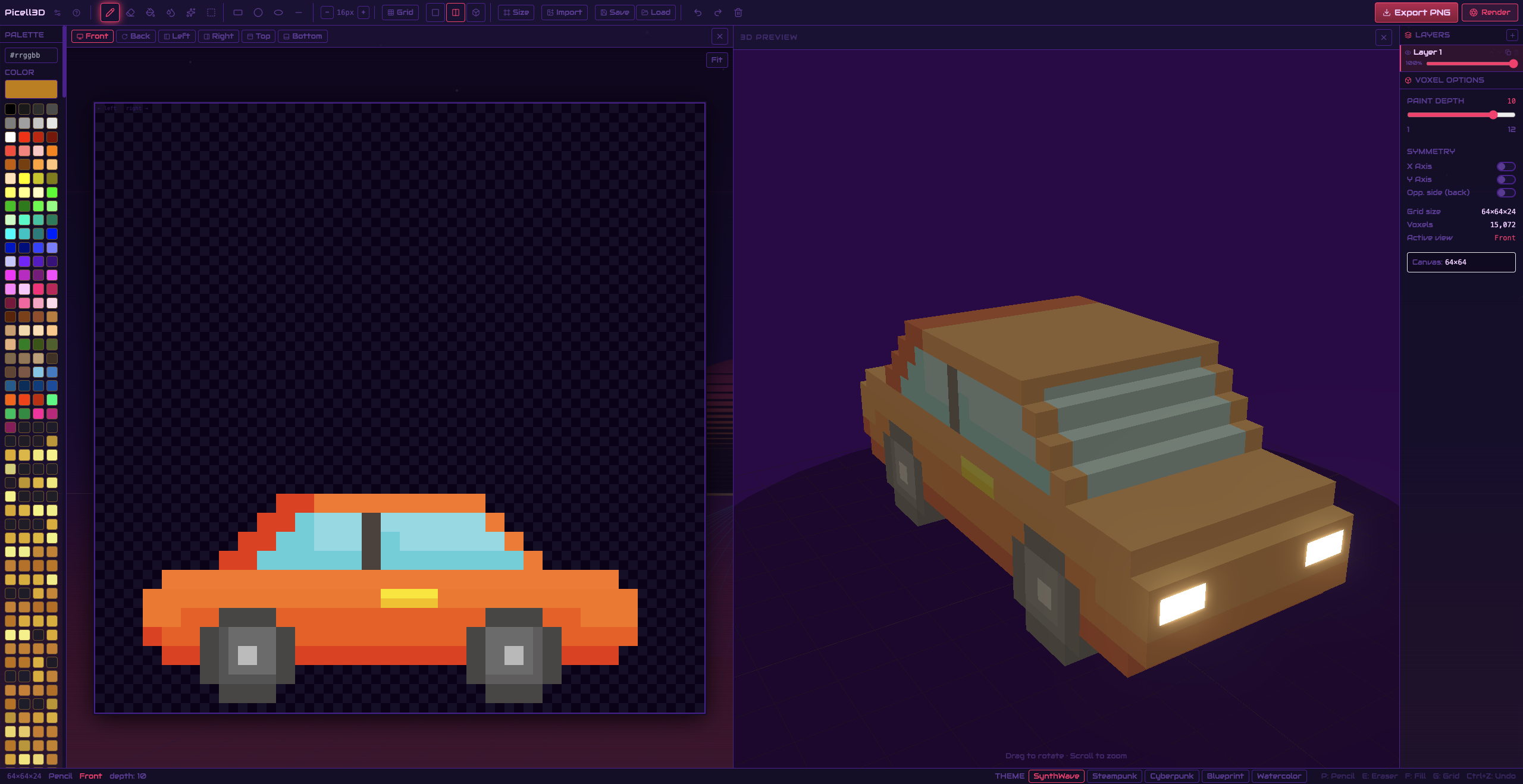 - Create voxel models from a pixel art workflow