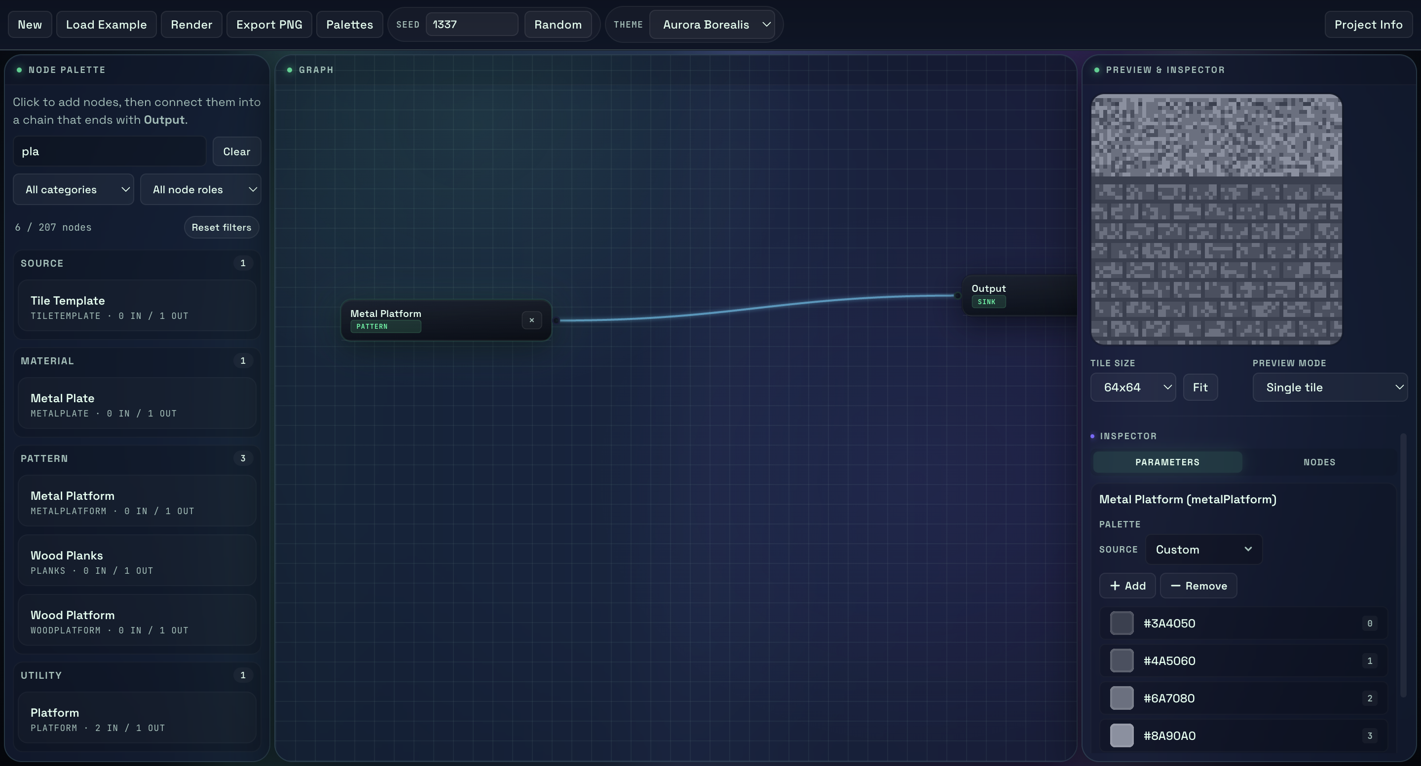 Create game-ready pixel art tiles with a fast node-based workflow.